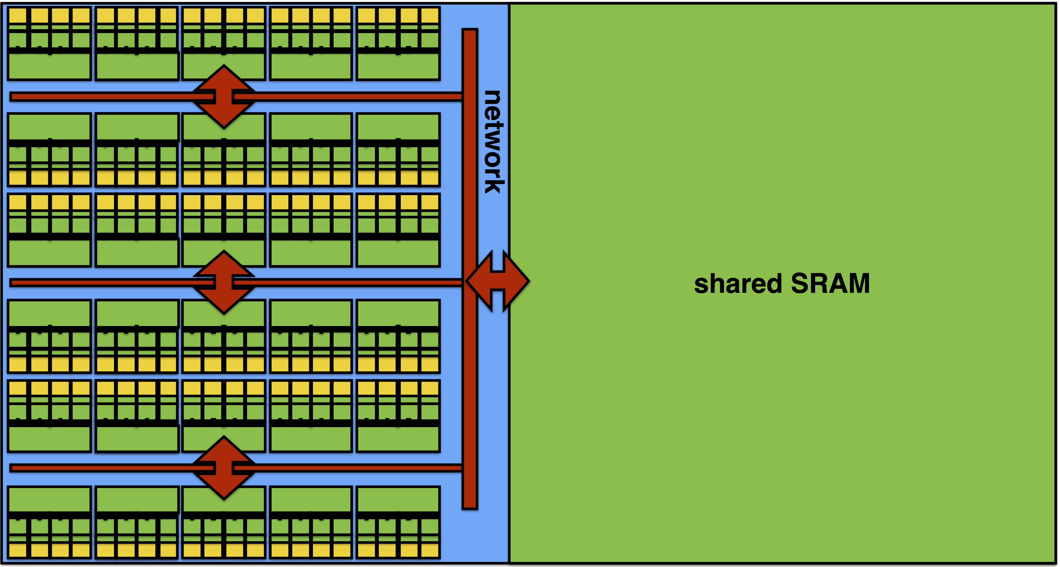 | Conceptual design of Crayon, composed of a scaled up multicore design with a network on chip interconnect. | |